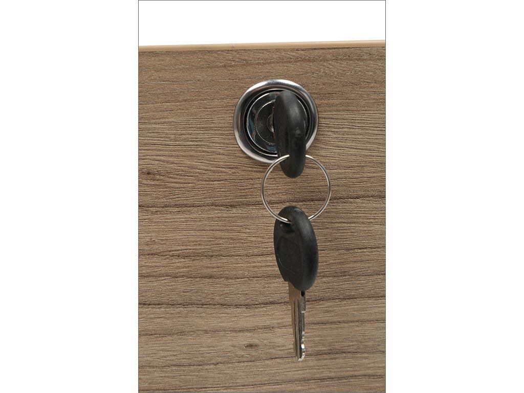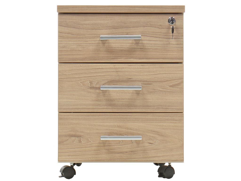 Максимальная нагрузка на ящик, кг: 8. Количество ящиков, шт: 3. Корпус и фасады выполнены из ЛДСП толщиной 18 мм. Топ из ЛДСП толщиной 25 мм, лазерная ABS кромка толщиной 2 мм. Ящики выполнены из ЛДСП и оснащены шариковыми направляющими полного выдвижения. Тумба снабжена замком и пластмассовым лотком для канцелярских принадлежностей в верхнем ящике. Тумба на 4 колёсиках, два из которых со стопором. Поставляется в собранном виде.