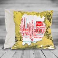 Подушка велюр/пайетки, 40х40 см, бежевый/золотистый (с печатью принта, надписи, фотографии)