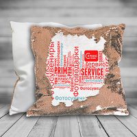 Подушка сатин/пайетки, 40х40 см, белый/розовое золото (с печатью принта, надписи, фотографии)