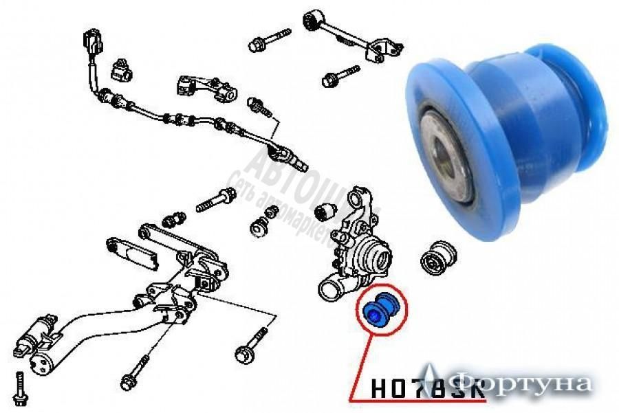 Сайлентблок задней цапфы. ПРИМЕНЯЕМОСТЬ: HONDA CIVIC EU/EP/ES 2001-2006, HONDA CIVIC GX EN1/EN2 1999-2005, HONDA CIVIC TYPE R EU/EP/ES 2001-2006, HONDA CIVIC/CIVIC FERIO ES1/ES2/ES3 2000-2006, HONDA CR-V RD4/RD5/RD6/RD7/RD9 2001-2006.