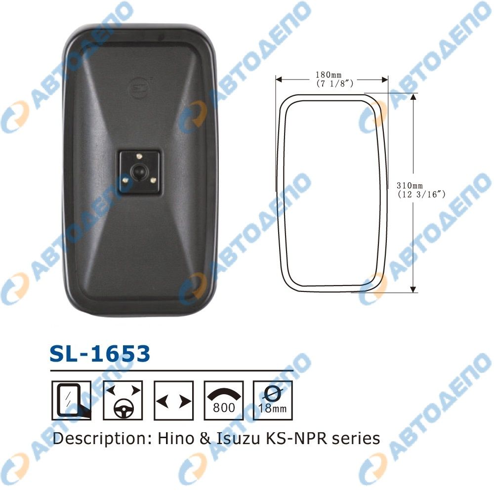 Зеркало заднего вида боковое ISUZU HINO SL-1653A