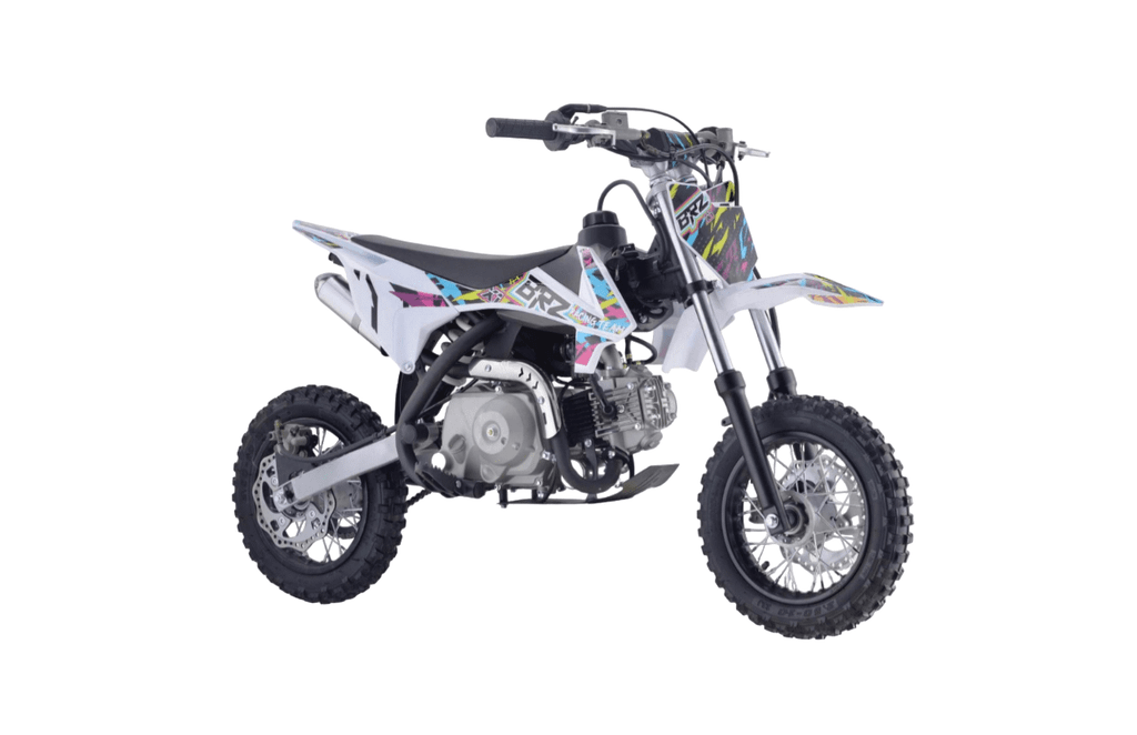 Питбайк BRZ X1 разработан для самых юных райдеров! Высота по седлу идеально подойдет для детей от 4 до 7 лет. BRZ X1 предназначен для активного отдыха на природе, для грунтовых дорог, лесных тропинок и бездорожья. Особенностью этого детского питбайка является максимальная адаптация для управления детьми - максимально облегченный вес за счет передней вилки неперевернутого типа, которая легче стандартной и при этом имеет большой запас прочности. Специальные рычаги переднего и заднего тормоза рассчитаны для детской руки, при этом сами тормозные системы - гидравлические. Они обеспечивают хорошую эффективность торможения при невысокой силе выжима рычага. Ручка газа имеет ограничитель для регулировки максимальной скорости. Все это обеспечивает максимальную безопасность для вашего малыша! Питбайк BRZ X1 будет отличным подарком для ребенка и позволит вам интересно и весело проводить выходные на природе.