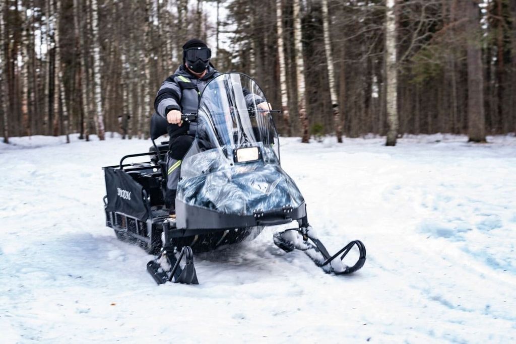 Бурлак-М Егерь Экспедитор - миниснегоход на раме от мотобуксировщика Бурлак-М Экспедитор с задним расположением двигателя и лыжным модулем от миниснегохода Бурлак-М Егерь.