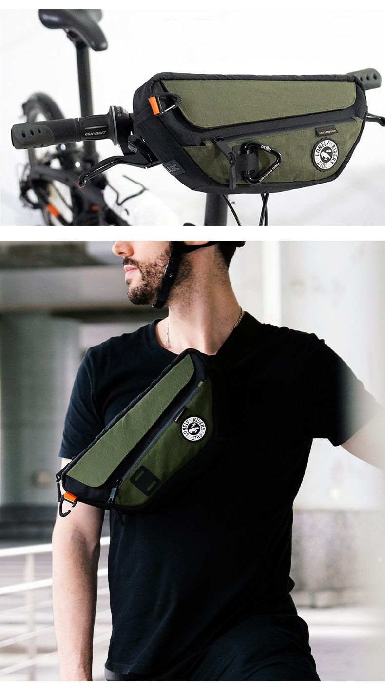 Стильные и функциональные с ярким дизайном сумки AAB1, выполнены из прочного влагозащищённого материала. Сумка имеет множество карманов и несколько карабинов на корпусе. Сумку можно установить на руль велосипеда, также ее можно носить через плече, благодаря спрятанному в корпусе ремню.