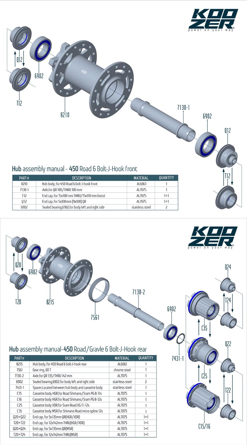 Передняя втулка KOOZER 450. 110*15 32H (серый)