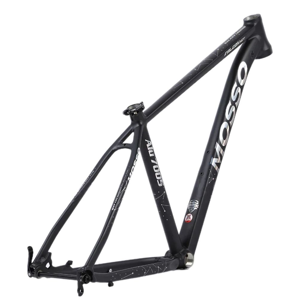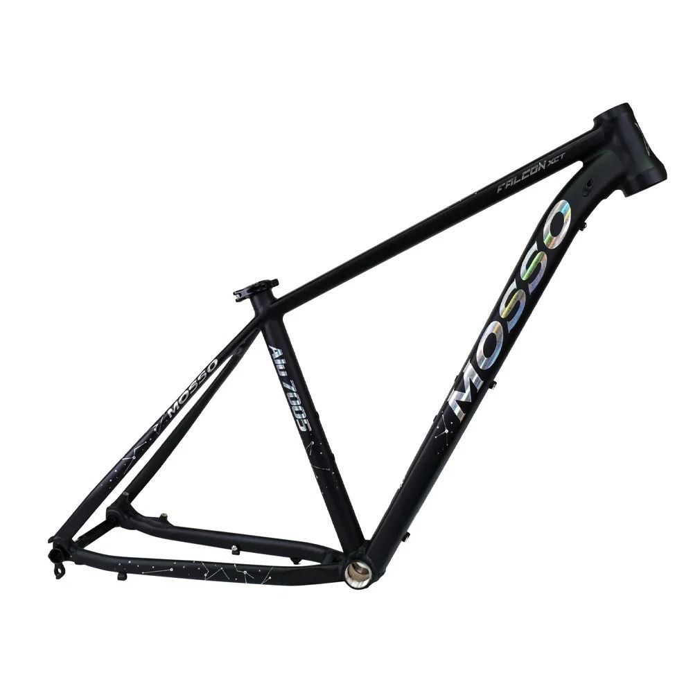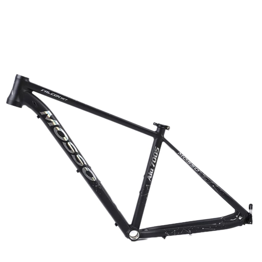 Кросс-кантрийная рама черного цвета с переливающимися надписями и рисунками металлического цвета. Выполнена из легкого и в тоже время достаточно прочного материала сплав AL 7005. Сплав имеет высокую прочность, отличную свариваемость и хорошую коррозионную стойкость. По сравнению с сплавом 6061, 7005 обладает большей долговечностью и прочностью. По мимо хорошего материала рама получила внутреннюю проводку, за исключением проводки под тормоз, она расположена с наружи под нижней трубой переднего треугольника. Важно ! Внутри рамы, тросики проходят без оплетки.