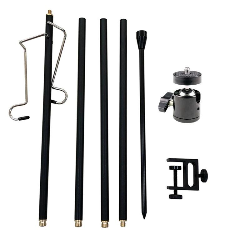 Кронштейн можно установить на край стола с помощью зажима или воткнуть в землю, на кронштейне имеется 2 крюк для фонаря и крепление с разбой подходящие для крепления фототехники, фонарей . Размер в сложенном виде: 34 см Диаметр: 1...1 100 ₽ -