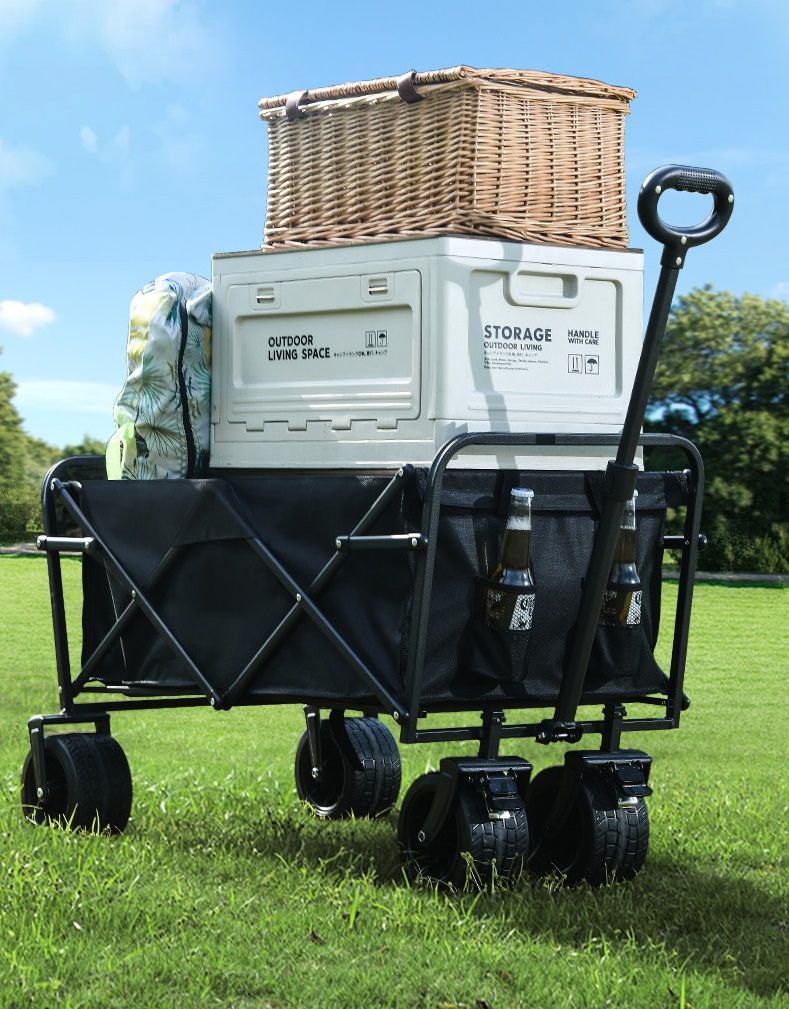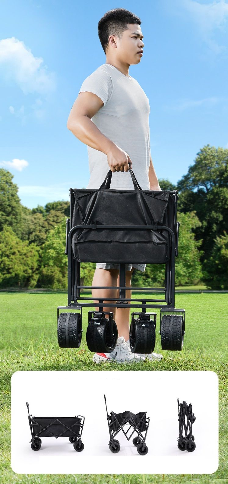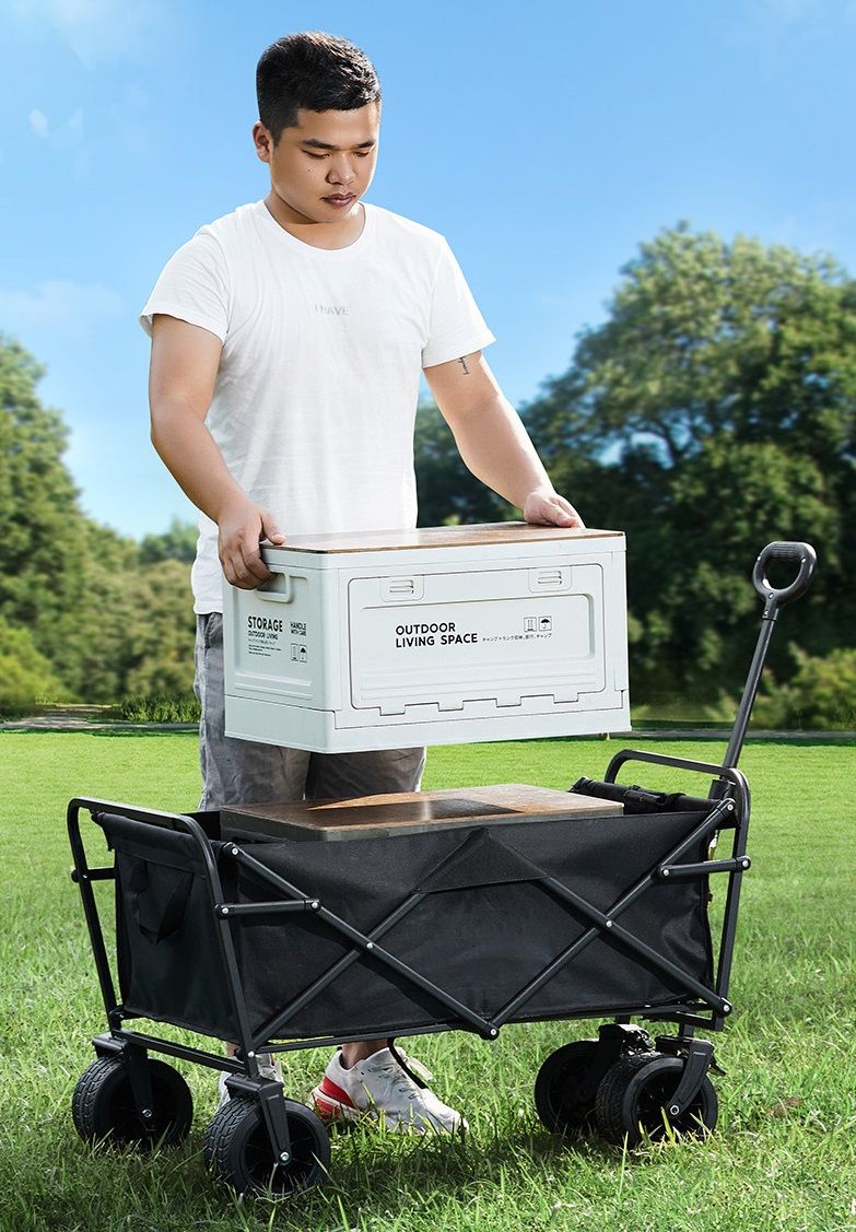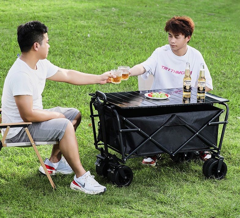 Даная тележка добавит комфорта вашему отдыху, больше не нужно тащить тяжёлые пакеты от парковки у месту отдыха, просто загрузите всё в тележку. Нужно сходить за дровами, тележка отлично подойдёт для этого. У данной тележки в комплекте имеется складная столешница, которая превратит вашу телегу в мобильный столик.