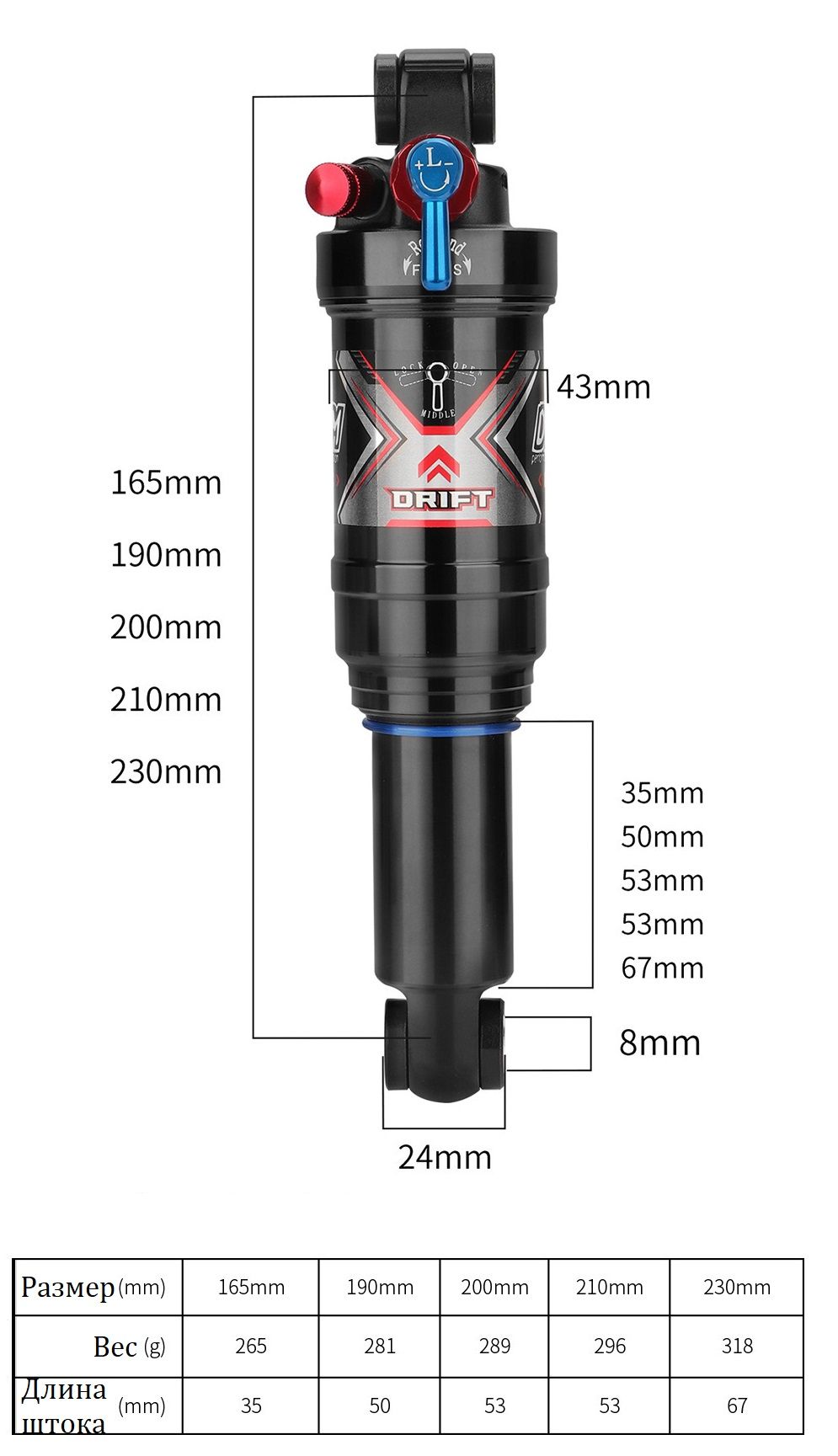 Амортизатор Воздушно-Масляный DNM AO-8RC (165 мм)