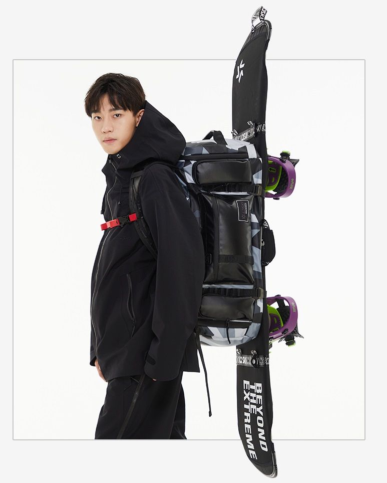 Назначение: Перевозка лыжных или сноубордических ботинок, сноуборда (крепится на рюкзак), шлема очков и другого снаряжения, . Сумка выполнена из износостойкой ткани, Внутри пространство разделено тканью оделяет ботинки со шлемом