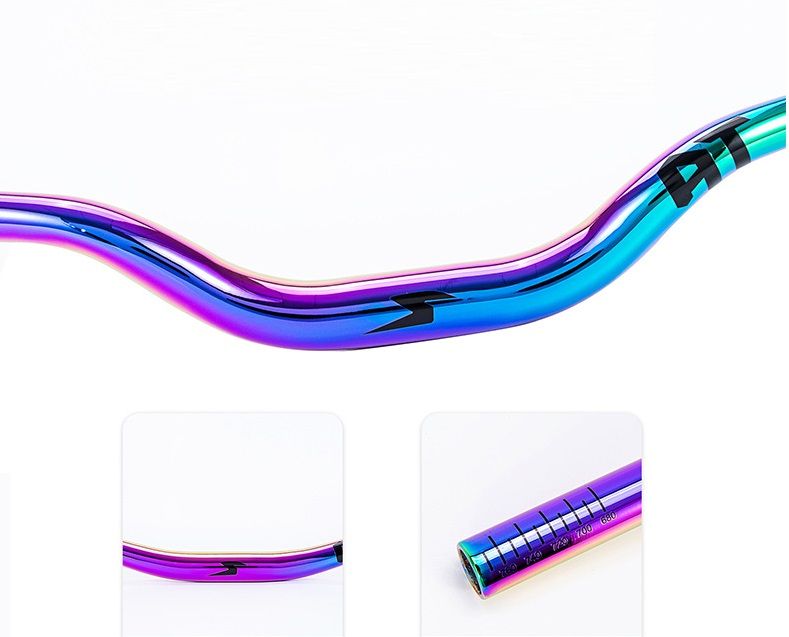Руль для экстремальных дисциплин 6061 Алюминий Прецизионная гибка с числовым программным управлением. Прочное анодирование Диаметр: 31,8 мм Подъем: 50/35 мм Длина: 780 мм