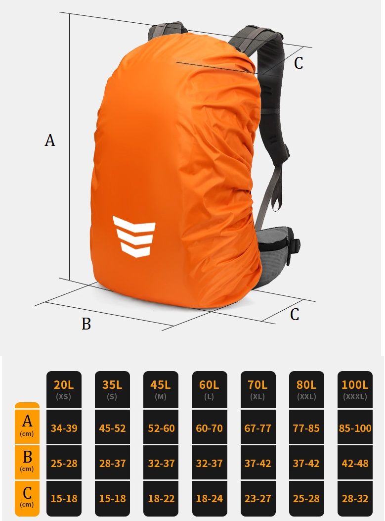 Чехол от дождя с большим количеством светоотражающих элементов XXXL - 85-110 л XXL - 75-85 л