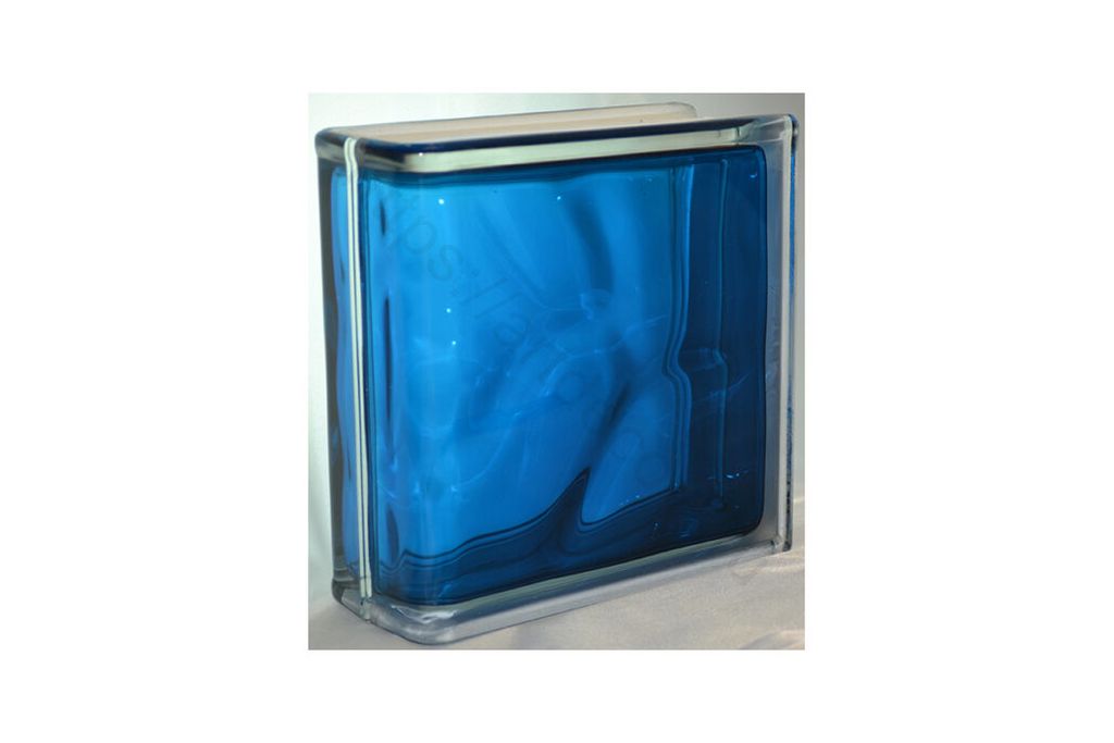 Стеклоблок Половинка 19х9х8 волна окрашенный внутри синий