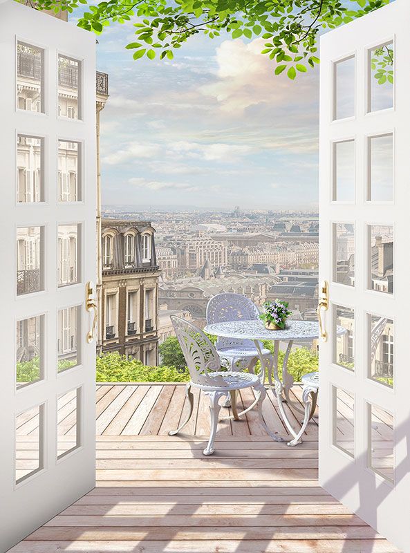 Фотообои F-007 Тропические листья с вуалью 300х270