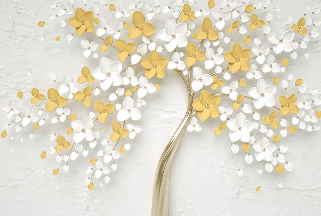 Фотообои F-314 Дерево с жёлтыми и белыми цветами 400х270
