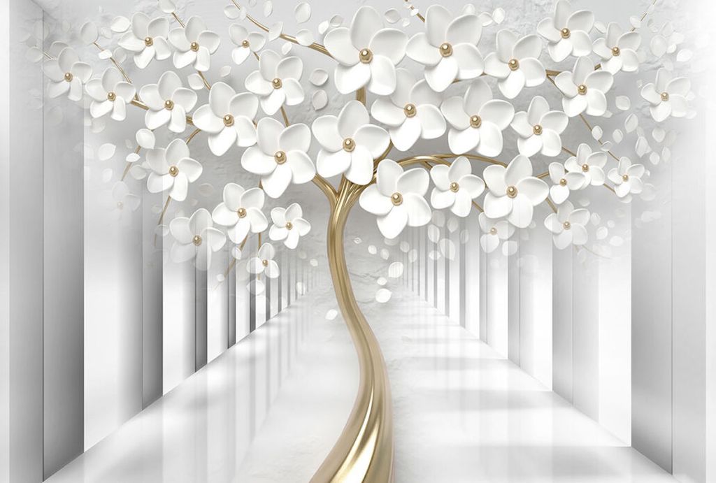 Фотообои F-002 Дерево с белыми цветами в тоннеле 400х270