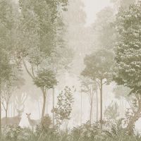 Фотообои F-429 Зелёный лес с оленями 300х270