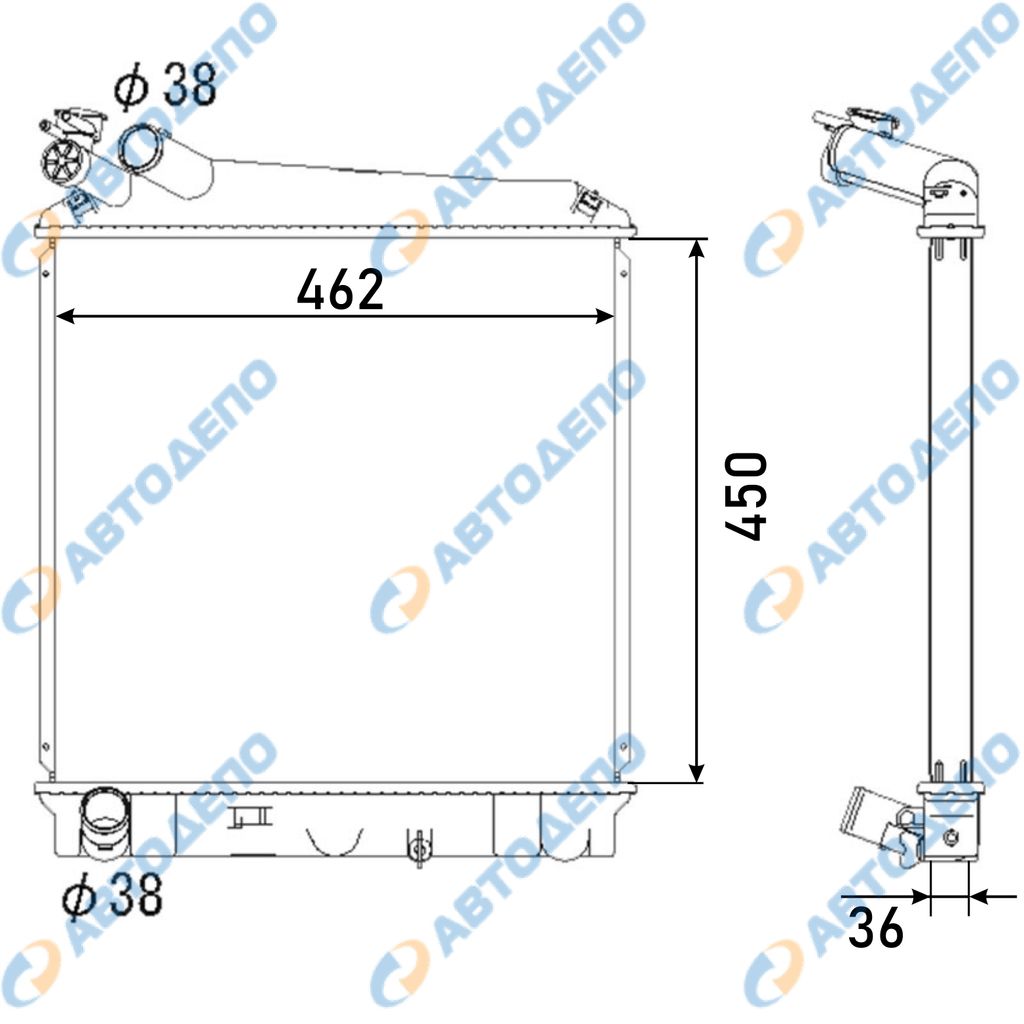 Радиатор охлаждения двигателя. ISUZU ELF AKR71GN, AKR81A, BKR66LR, BKR81E, BPR71L, AKR71ER, AKR66ER, AKR81ED, AKR81A, AKR71E, NKR66ER, NKR66E IS-0129-36-AT