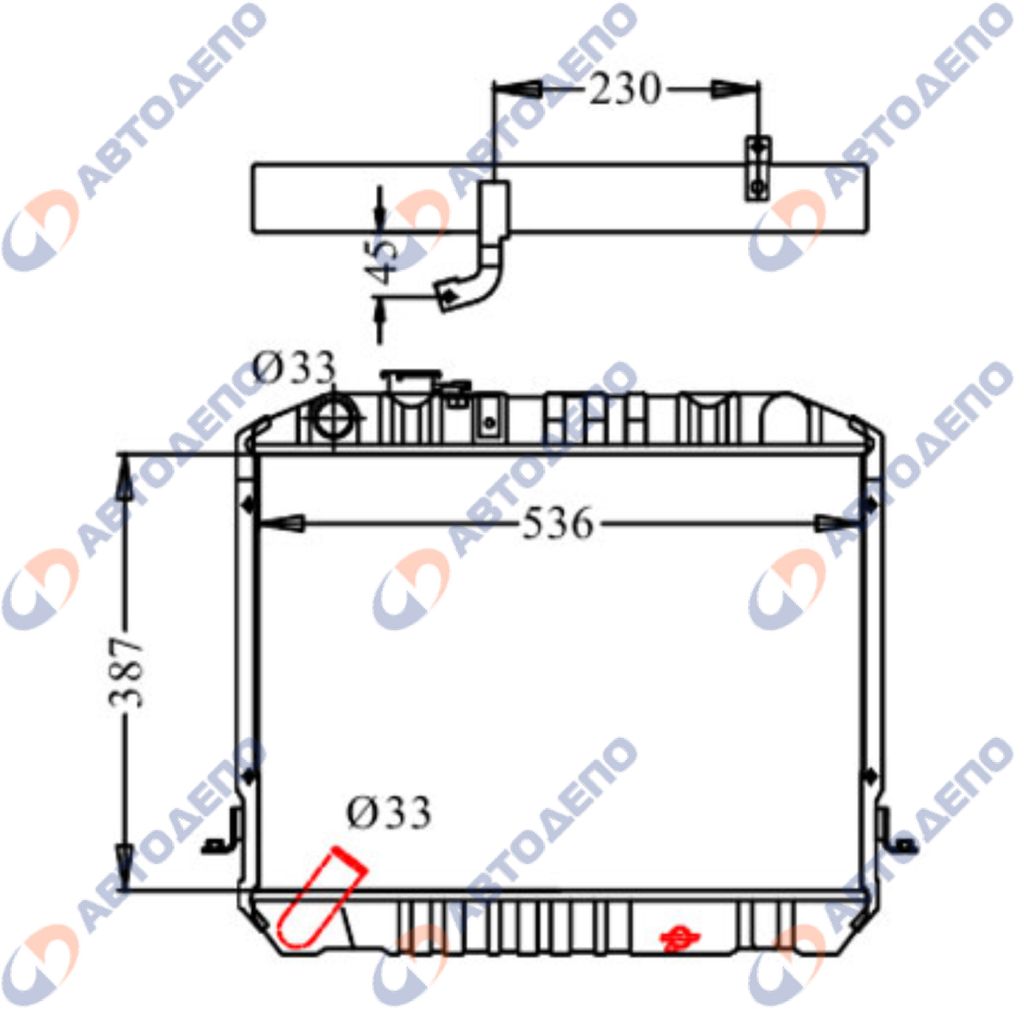 Радиатор охлаждения двигателя. ISUZU ELF, NISSAN ATLAS NKR66, NKR71E, NKR81A, AKR71E, BKR71E, AKR71, AKR81, BKR66, BKR81, BKR71, NKR81AD, NKR81AN IS-0054-36-AT