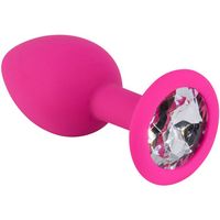 Анальная пробка из силикона с прозрачным кристаллом 5,8/2,8см, розовая