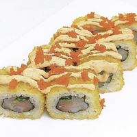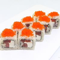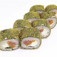 220 гр. Сливочный сыр, слабосоленый лосось, кунжут, огурец. Пищевая ценность блюда: белки — 14,15; жиры — 17,1; углеводы — 38,25. Калории: 367,46 ккал