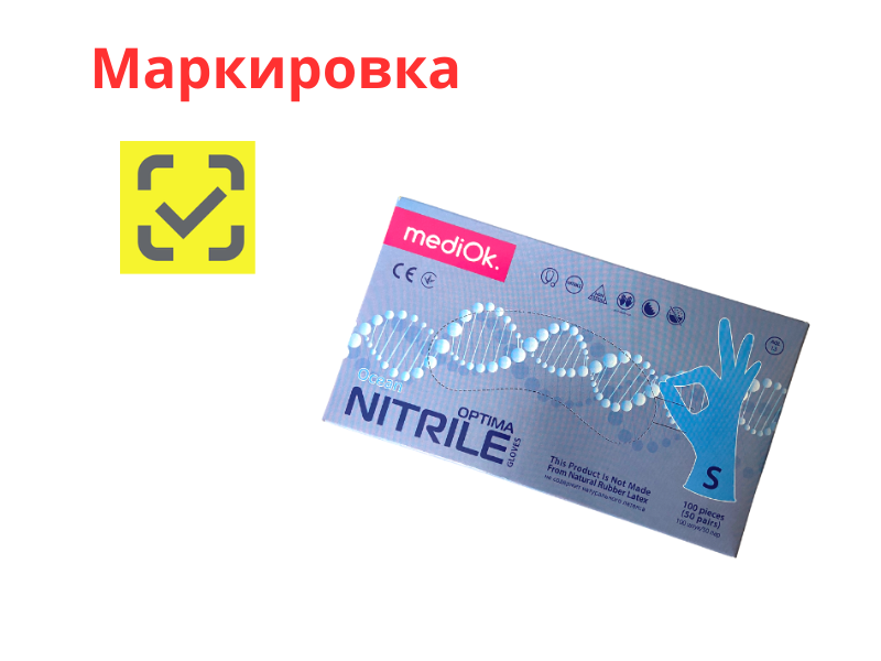 Перчатки MediOK смотровые нитриловые Nitrile Optima неопудренные текстурированные нестерильные, цвет голубой, размер S, 50 пар/упак., Китай ("Blue Sail Medical Co., Ltd.")
