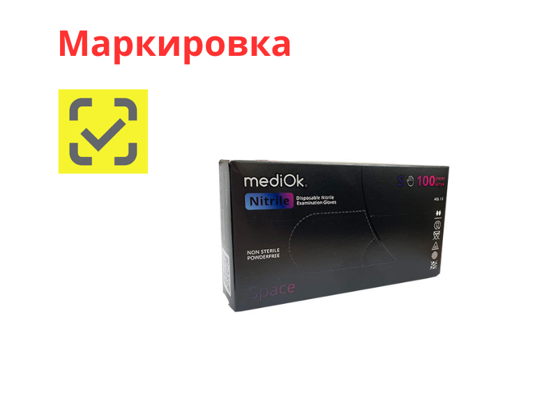 Перчатки MediOK смотровые нитриловые неопудренные текстурированные нестерильные, черного цвета, размер S, 50 пар/упаковка, Китай ("Блю Сэйл Медикал Ко., Лтд.")