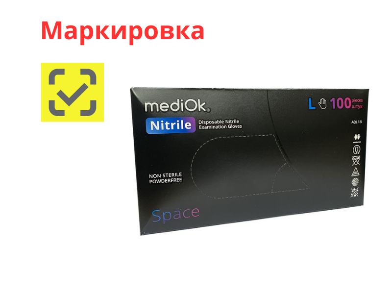 Перчатки MediOK смотровые нитриловые неопудренные текстурированные нестерильные, черного цвета, размер L, 50 пар/упаковка, Китай ("Блю Сэйл Медикал Ко., Лтд.")