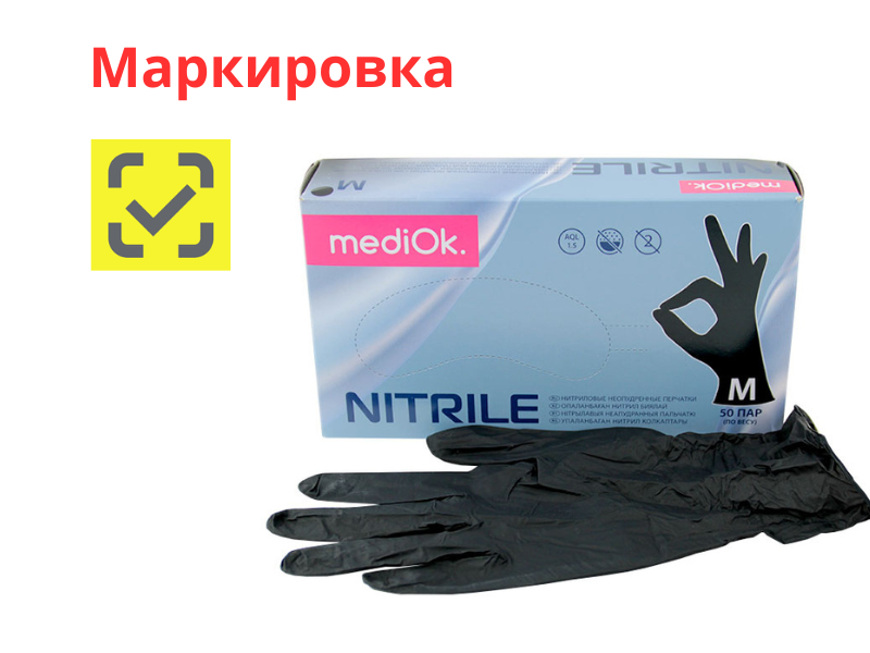 Перчатки MediOK смотровые нитриловые неопудренные текстурированные нестерильные, черного цвета, размер M, 50 пар/упаковка, Китай ("Блю Сэйл Медикал Ко., Лтд.")