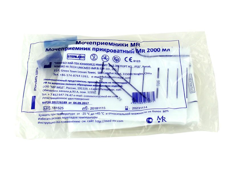 Мочеприемники MR: Мочеприемник прикроватный MR 2000 мл, 10 штук в упаковке, Китай (Ningbo Hi-Tech Unicmed Imp. &Exp. Co., Ltd.)