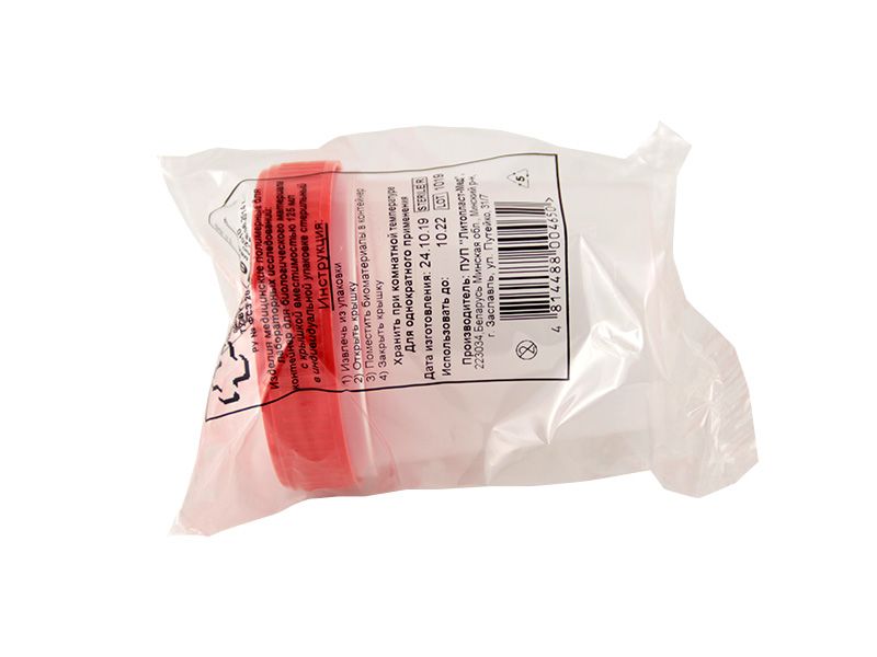 Контейнер для биопроб 125 мл пластмассовый (полипропилен), стерильный, с завинчивающейся крышкой, 200 шт. в упаковке, Республика Беларусь (Литопласт-Мед)