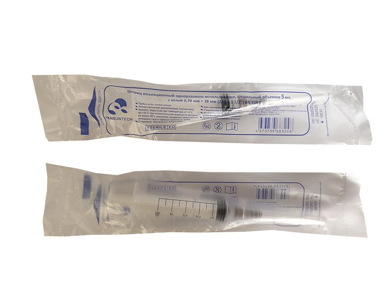Шприц 5 мл с иглой 22G*1 1/2 (0,7*38 мм) инъекционный одноразового использования стерильный, 100 штук/упаковка, Китай (Vansun Medical Equipment (Fujian) Co., Ltd) 77883
