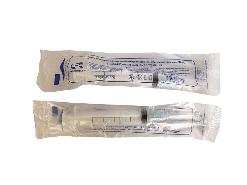 Шприц 20 мл с иглой 21G*1 1/2 (0,8*38 мм) инъекционный одноразового использования стерильный, 60 штук/упаковка, Китай (Vansun Medical Equipment (Fujian) Co., Ltd) 77887