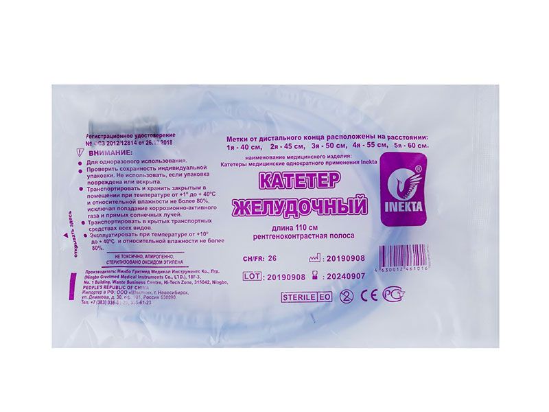 Катетер желудочный Inekta CH26, с рентгеноконтрастной полосой, стерильный, 110 см., Китай (Ningbo Greetmed Medical Instruments Co., Ltd)