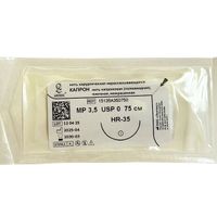 Капрон крученый неокрашенный МР(4), USP(1), длина 75 см, игла колющая HR-35, 1/2 окружности, Россия (ООО "Линтекс") 15340A350750