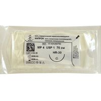 Капрон плетеный неокрашенный МР(4), USP(1), 75 см, игла колющая HR-30, 1/2 окружности, Россия (ООО "Линтекс") 15140A300750