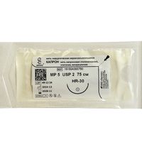 Капрон плетеный неокрашенный МР(5), USP(2), 75 см, игла колющая HR-30, 1/2 окружности, Россия (ООО "Линтекс") 15150A300750