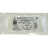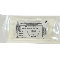 Капрон плетеный неокрашенный МР(5), USP(2), 75 см, игла колющая HR-40, 1/2 окружности, Россия (ООО "Линтекс") 15150A400750