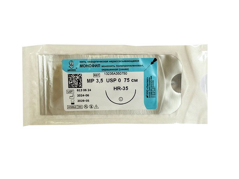 МОНОФИЛ- нерассасывающиеся полипропиленовые мононити: биоинертны, прочны, атравматичны, некапиллярны, нефитильны, не теряют прочность под действием тканевых жидкостей. Монолитная структура и гидрофобность предотвращают пропитывание тканевыми жидкостями, что исключает инфицирование через данный шовный материал.