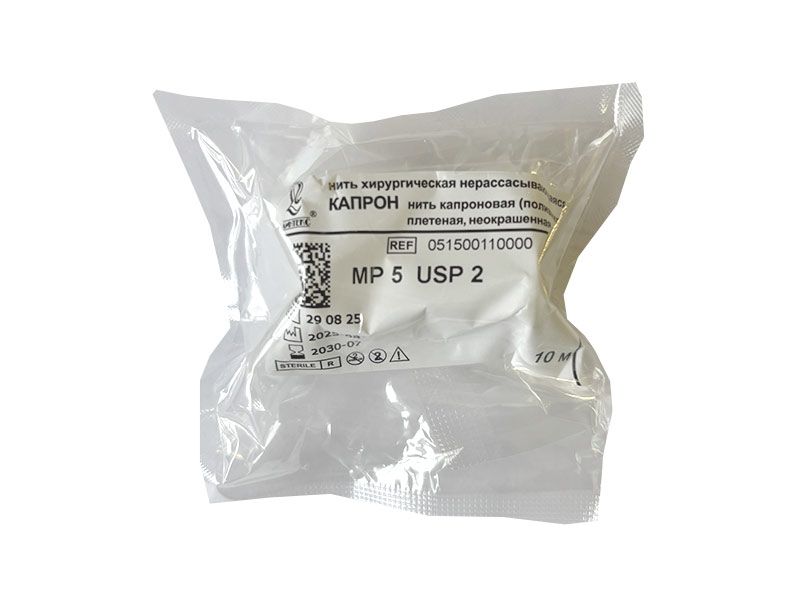 Нити КАПРОНрекомендованы для наложения швов на коже, подкожной клетчатке, мышцах, апоневрозе, в хирургиитрахеи и бронхов. Нити достаточно прочны, эластичны, легко вяжутся хирургическими узлами с использованием стандартной мануальной техники завязывания, а также с помощью инструментов