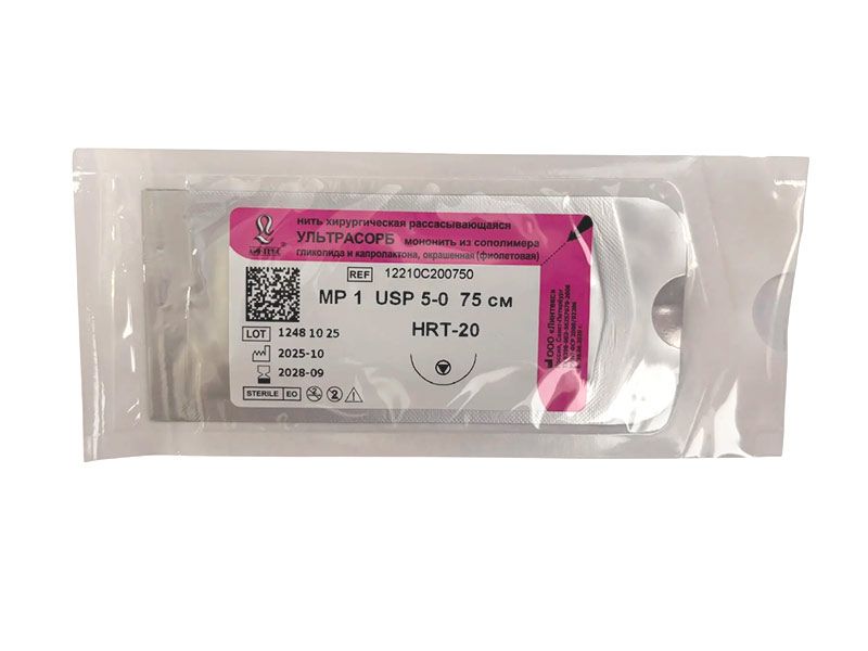 Ультрасорб фиолетовый, МР(1) USP(5/0), длина 75 см, игла колюще-режущая HRT-20, 1/2 окружности, Россия (ООО "Линтекс") 12210C200750