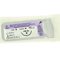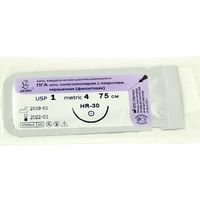 ПГА плетеный фиолетовый МР(4), USP(1), длина 75 см, игла колющая HR-30, 1/2 окружности, Россия (ООО "Линтекс") 11040A300750