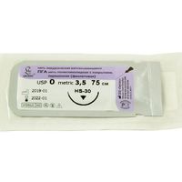 ПГА плетеный фиолетовый МР(3,5), USP(0), длина 75 см, игла обрат-режущая НS-30, 1/2 окружности, Россия (ООО "Линтекс") 11035B300750