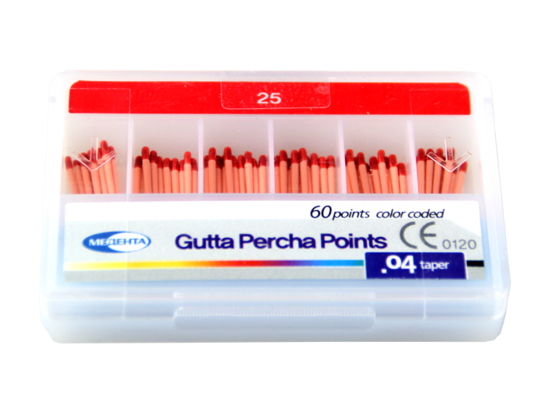Штифт Медента эндоканальный гуттаперчевый, размер №25, конусность специальная 04, 60 шт/упаковка, Республика Корея (Meta Biomed Co., Ltd.) 04GUT25 P21