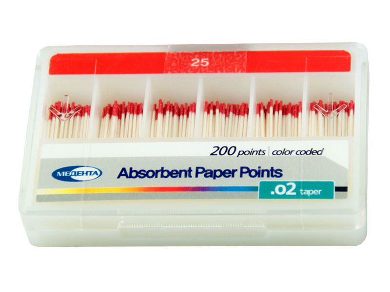 Штифт Медента эндоканальный абсорбирующий бумажный, размер №25, конусность стандартная 02, 200 шт/упаковка, Республика Корея (Meta Biomed Co., Ltd.)