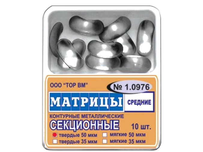 Матрицы металлические секционные (средние), твердые 50 мкм, 10 шт/упаковка, Россия (ООО "ТОР ВМ") 1.0976