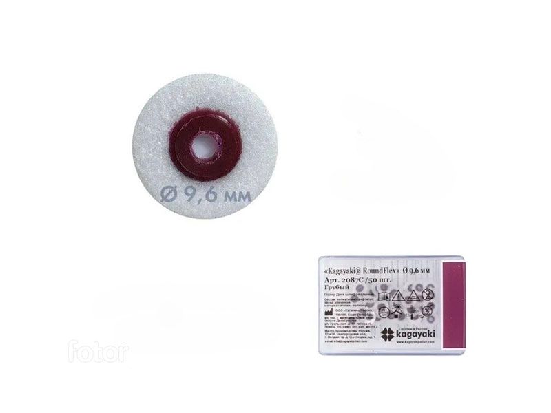 Полир Диск шлифовальный "Kagayaki RoundFlex" грубый бордо, диаметр 9,6 мм., 50 штук/упаковка, Россия (ООО "Кагаяки") 2087С/50