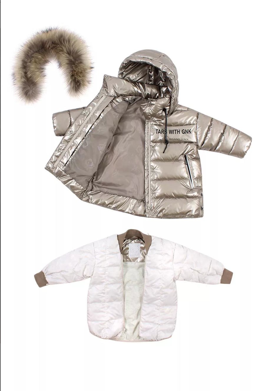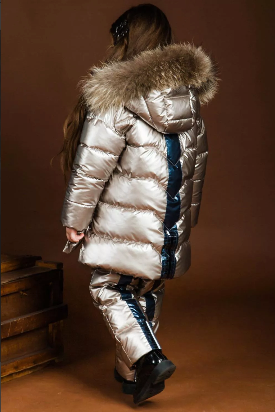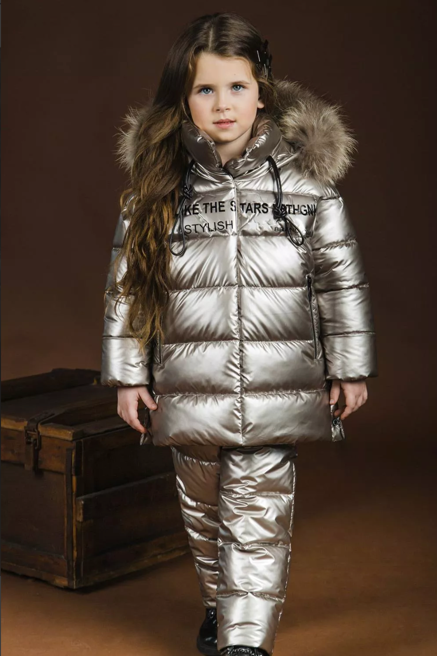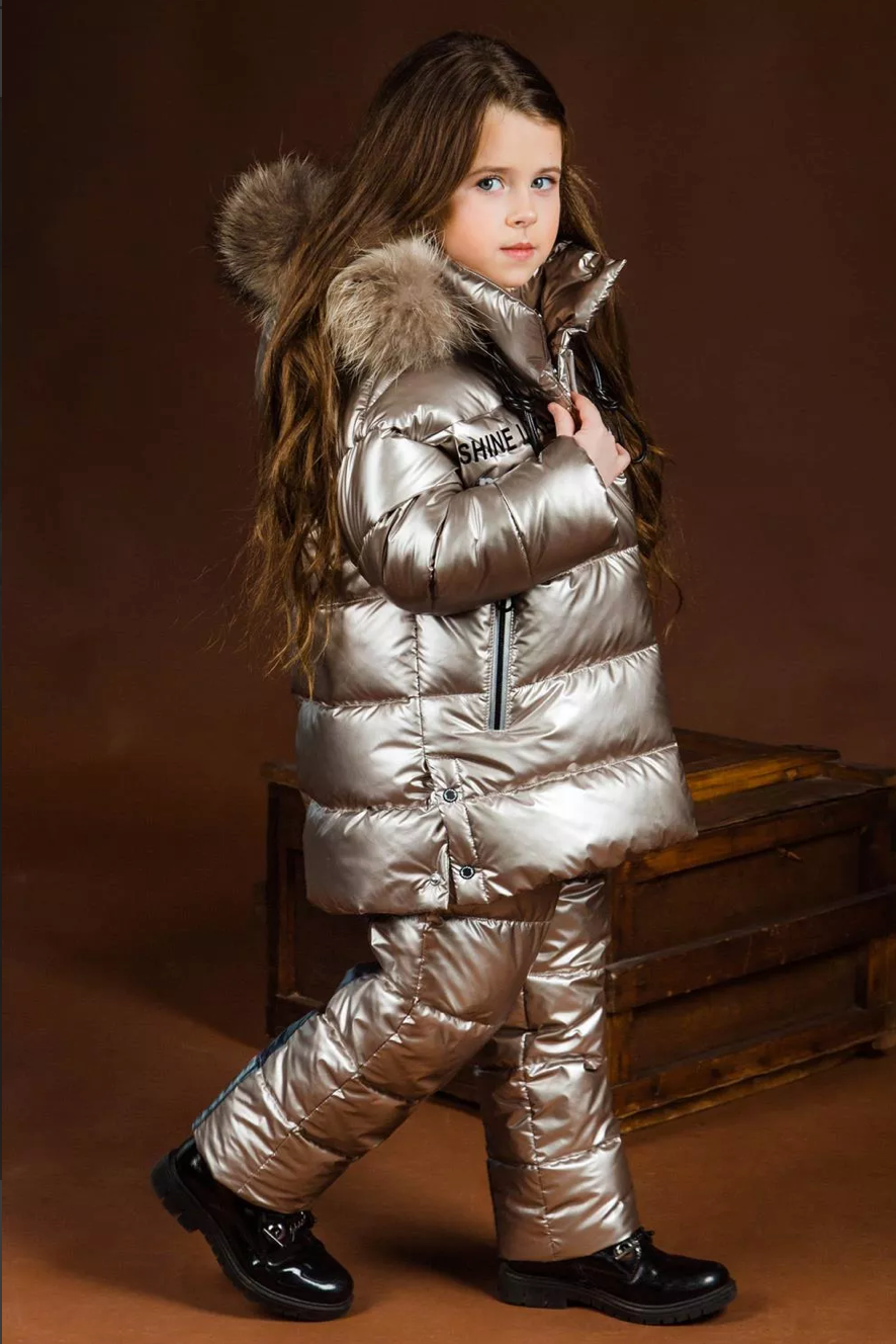 Наполнитель: куртка с отстегивающимся пуховым пакетом (наполнитель - пух), полукомбинезон (наполнитель - синтетический лебяжий пух)