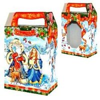 Коробка сборная с окном [14*08*19] "Дед Мороз и Снегурочка"