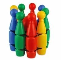Высота кегли 29,5 см. Количество: 9 шт. + 2 шара. Набор в держателе. Материал: мягкий пластик.